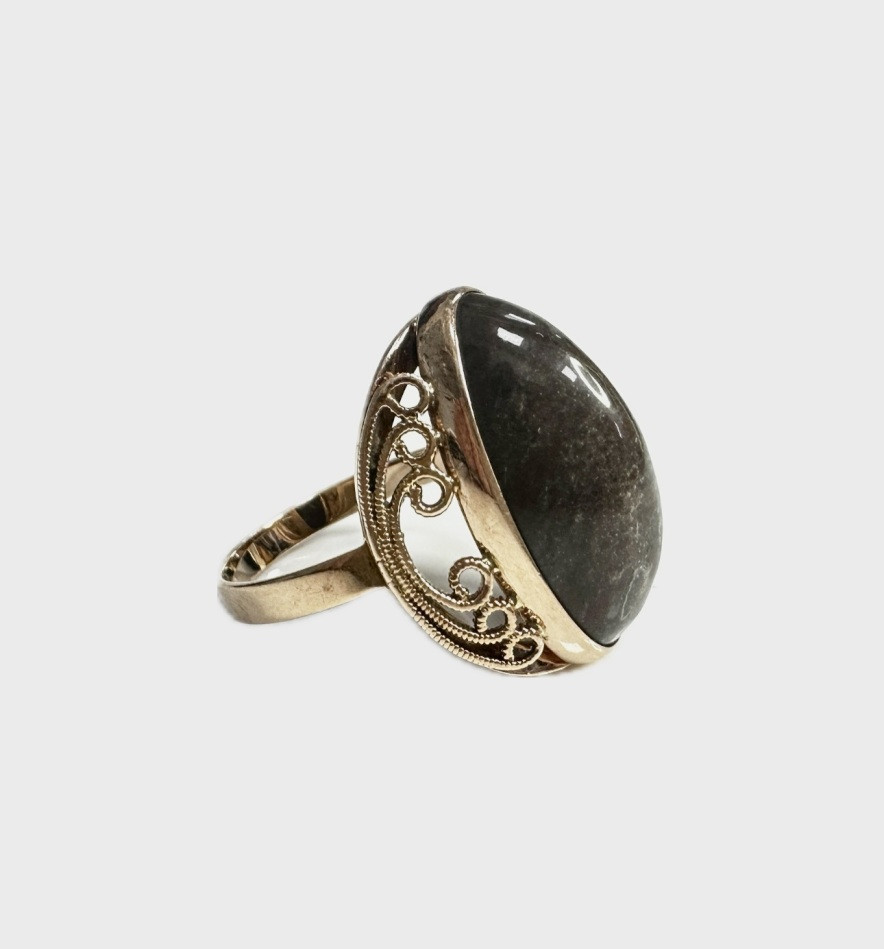 14KAnillo cabujón marrón de oro 14K, T 25