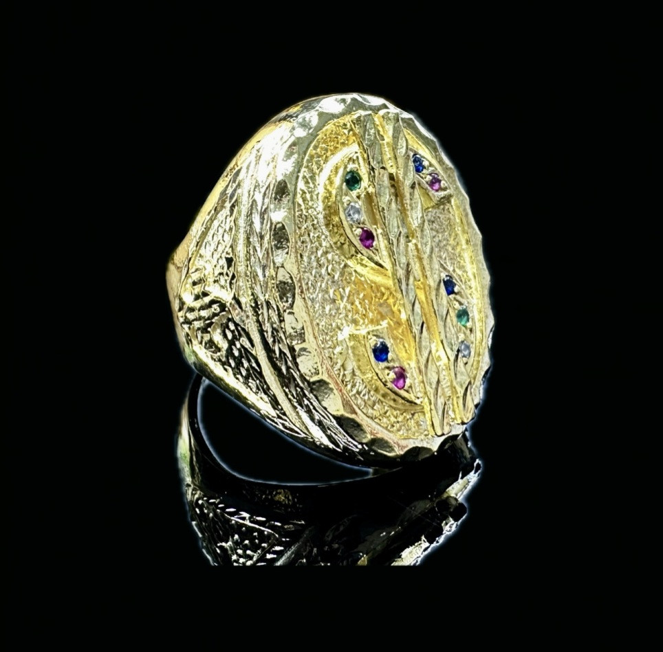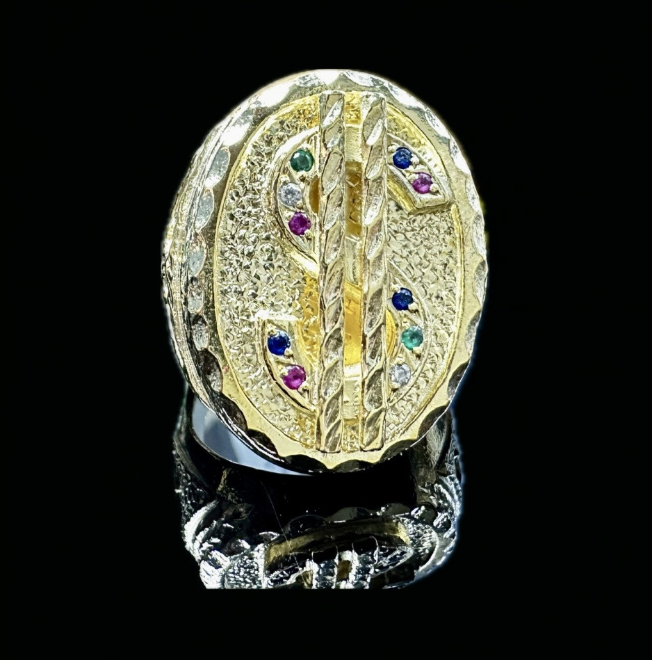 Anillo plata bañado en oro 18K simbolo dolar ovalado piedras T.30