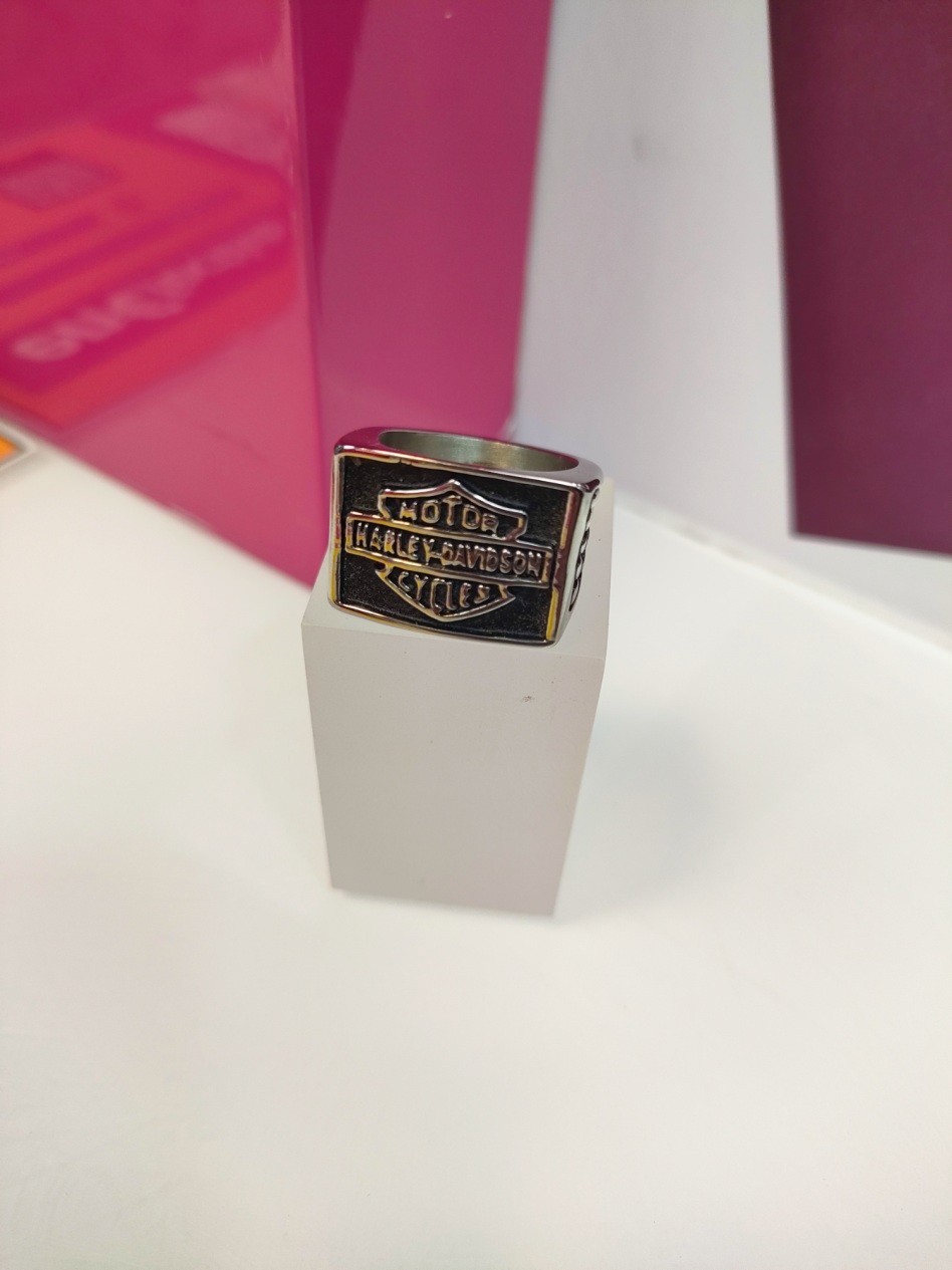 Anillo acero plateado tipo sello cuadrado harley davidson T20