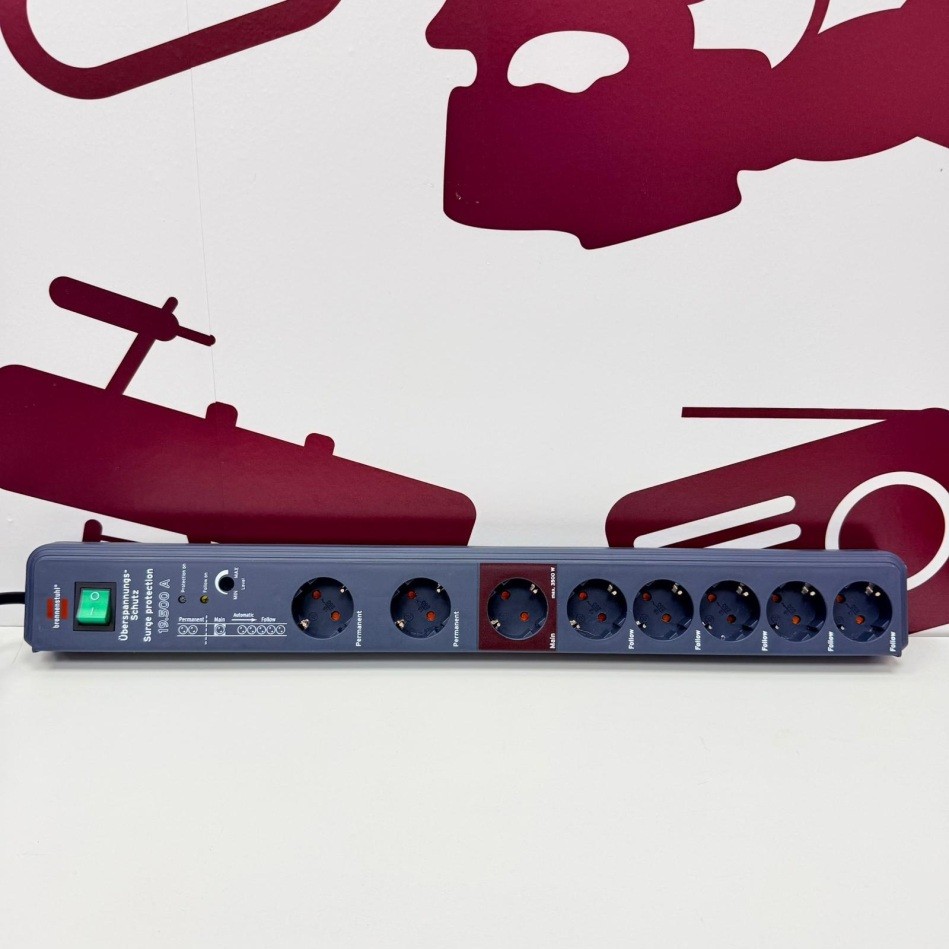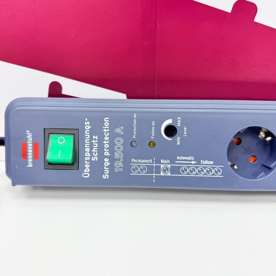 Multiplicador regleta automática Secure-Tec de Brennenstuhl con 8 tomas de corriente y protección contra sobretensiones de hasta 19.500 A.
