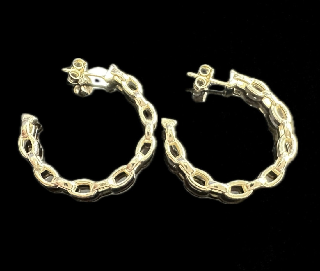 Pendientes tipo medio aro cadena de plata de ley 925 baño oro 18K, 3,3 cm