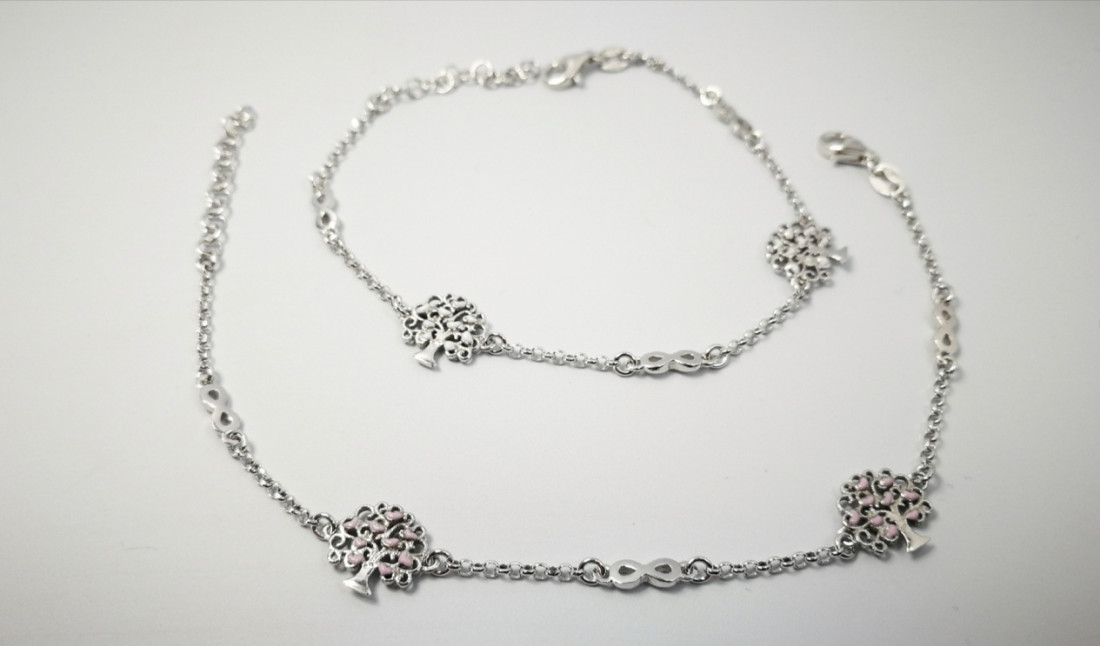 Pulsera arbolito corazones blanco y lila EBR17436 Rodio