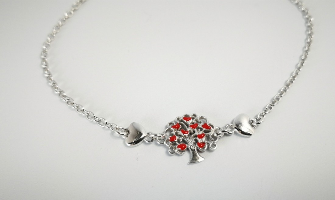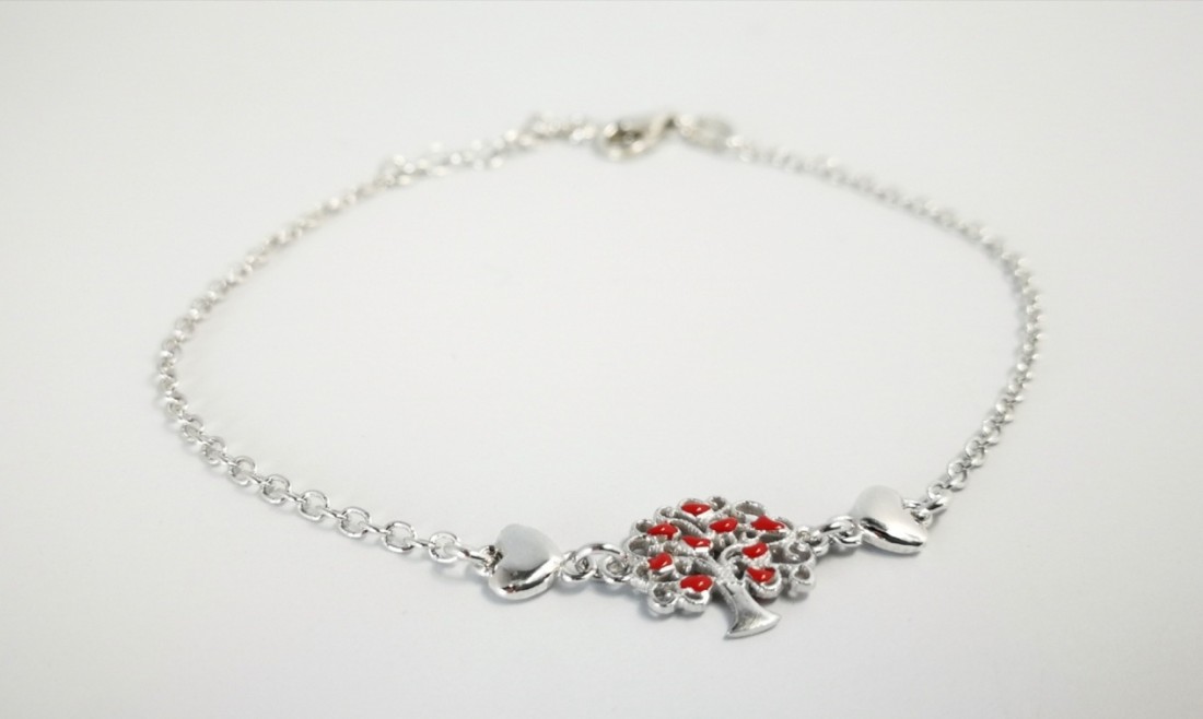 Pulsera arbolito corazones rojo EBR17438 Rodio